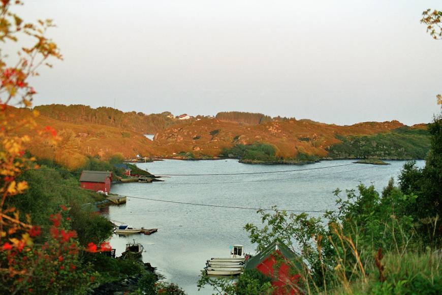 Rund eine Autostunde nördlich von Bergen befindet sich auf der Insel Radøy der gepflegte Hyttenpark, der bequem über Brücken erreichbar ist. Die sechs baugleichen Ferienhäuser liegen leicht erhöht auf einem kleinen Hügel und sind harmonisch in die eindrucksvolle Fjordlandschaft eingebettet.