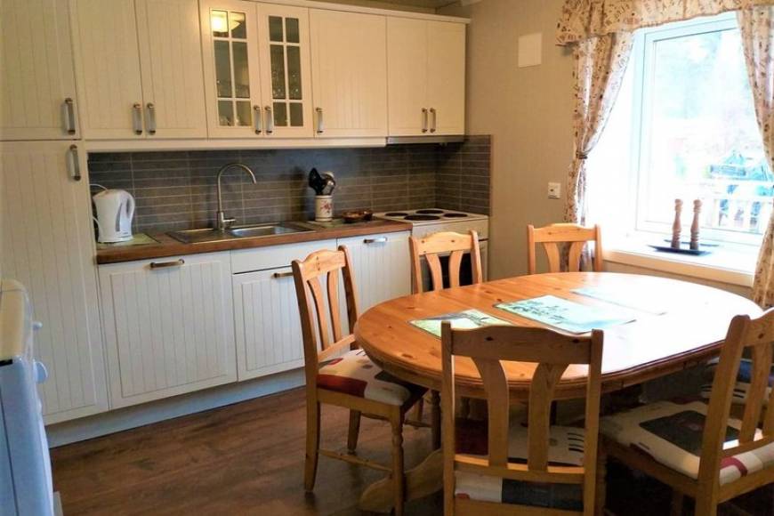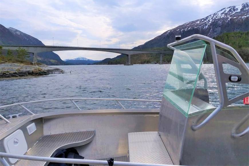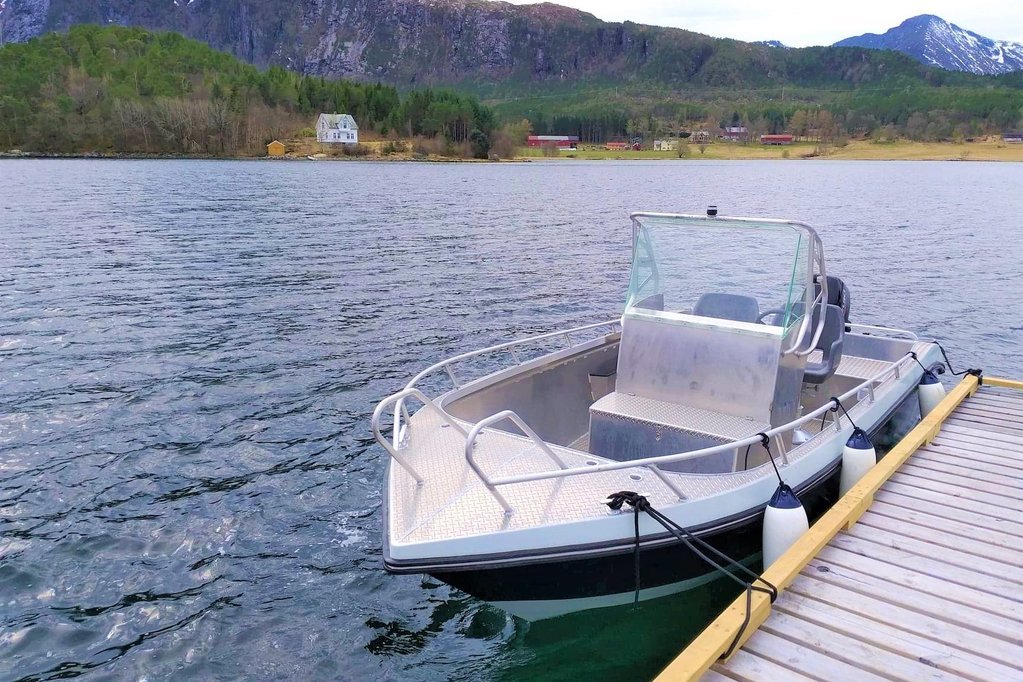 Es sind nur 50 m bis zum Fjord, Steg und Bootshaus. Das im Hafen gelegene Bootshaus ist extra für die Fischverarbeitung eingerichtet und verfügt über einen großen überdachten Filetierplatz mit fließendem Wasser und Licht. Im Bootshaus finden Gäste 3 abschließbare Räume für die Aufbewahrung von privaten Angelsachen.